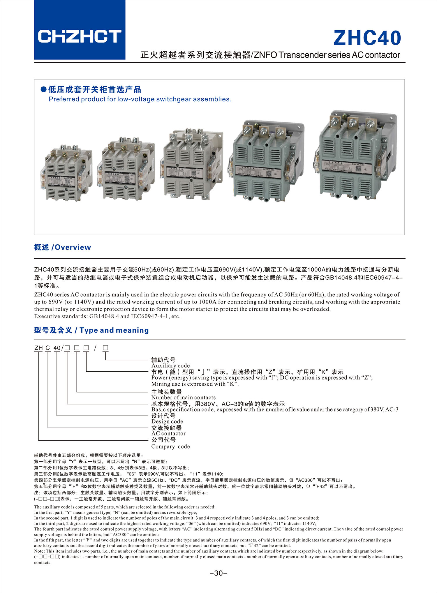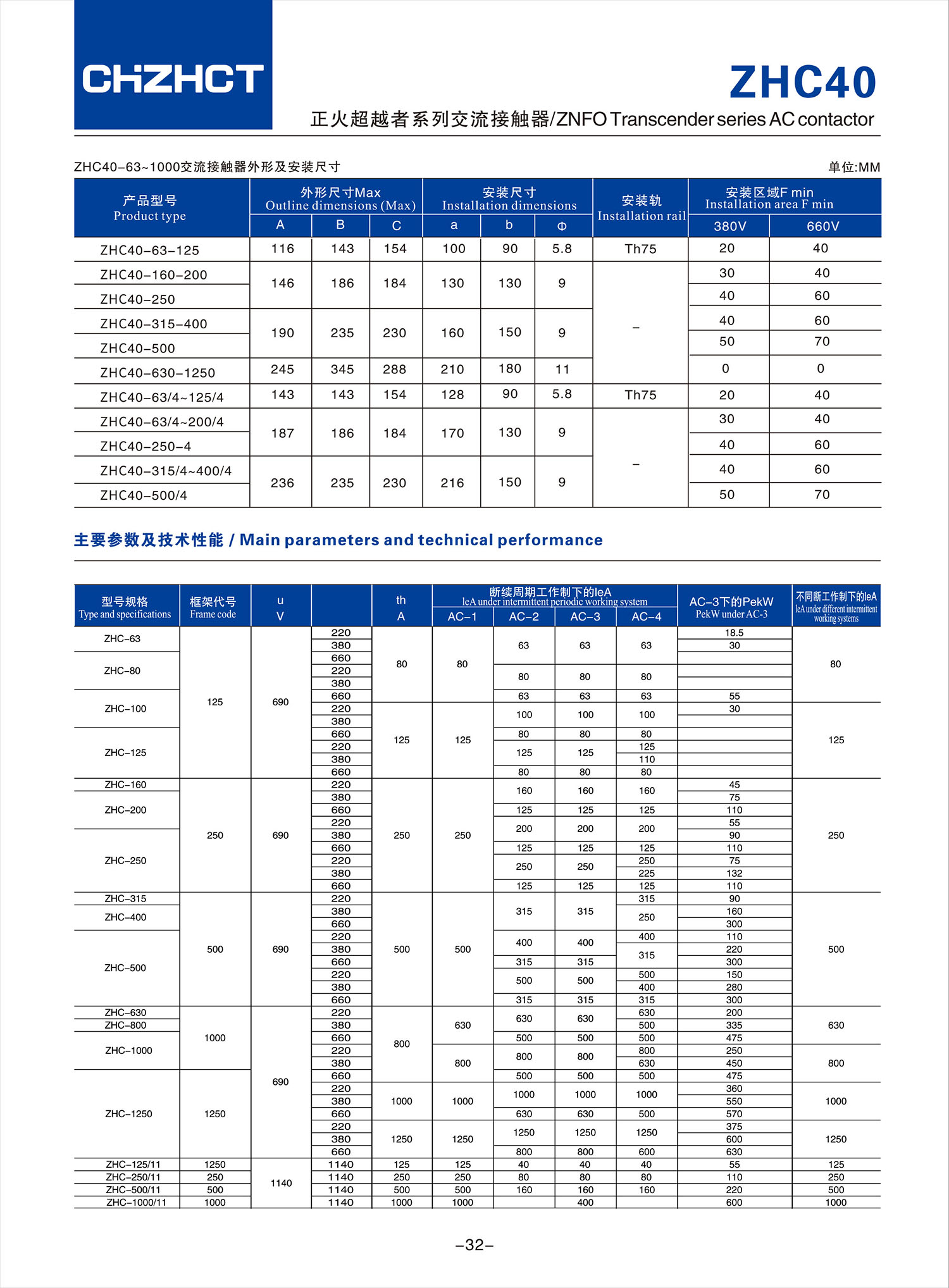 ZHC40 正火超越者系列交流接觸器產(chǎn)品說明書