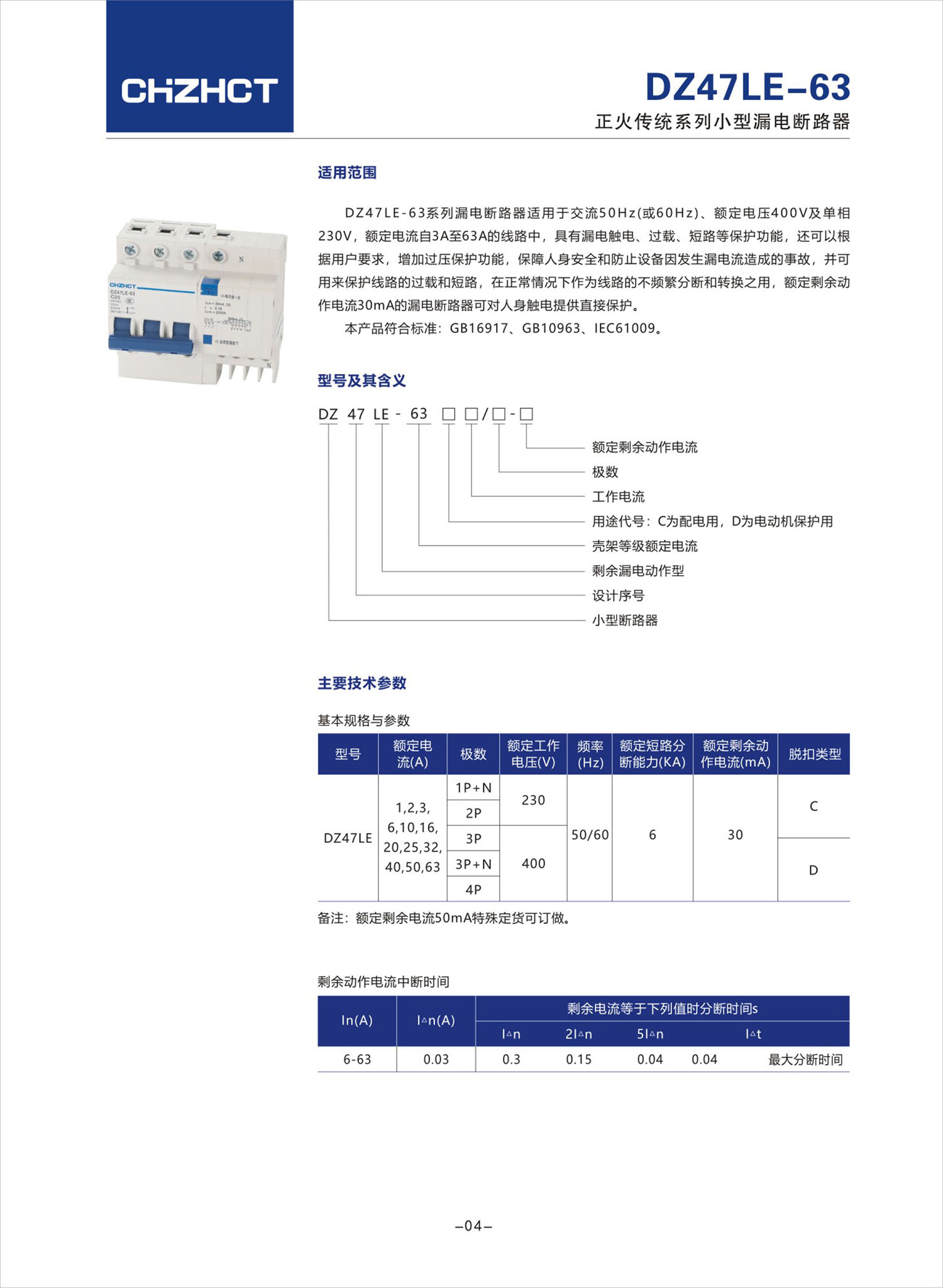DZ47LE-63 小型漏電斷路器產(chǎn)品說明書