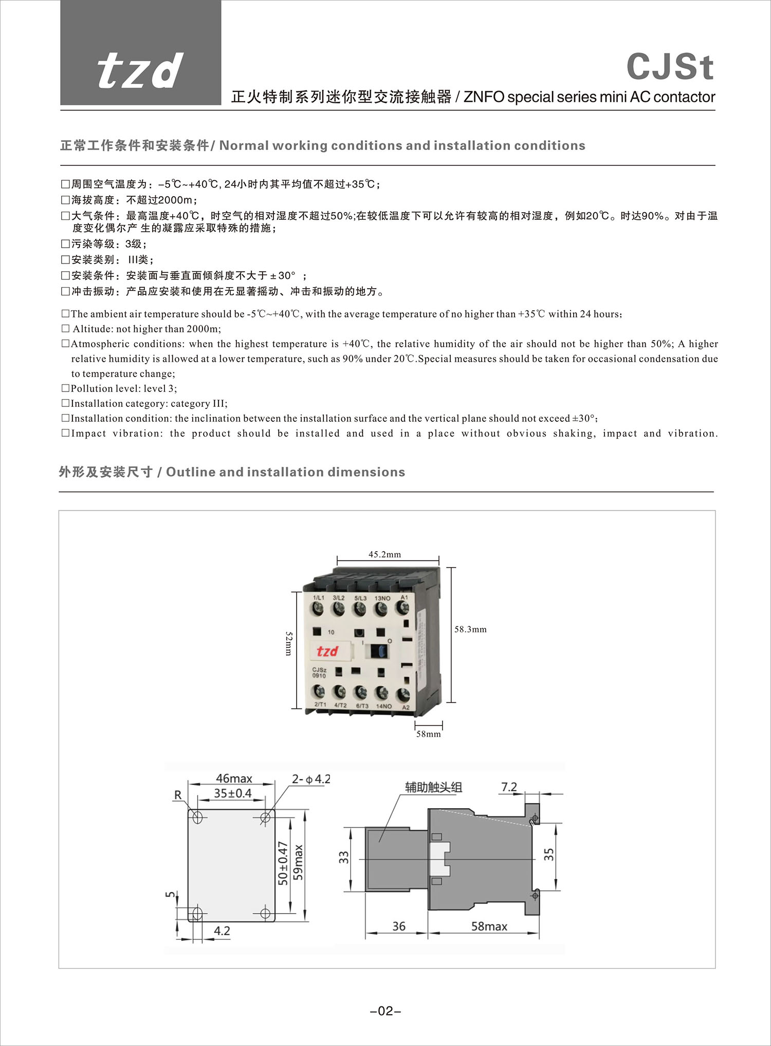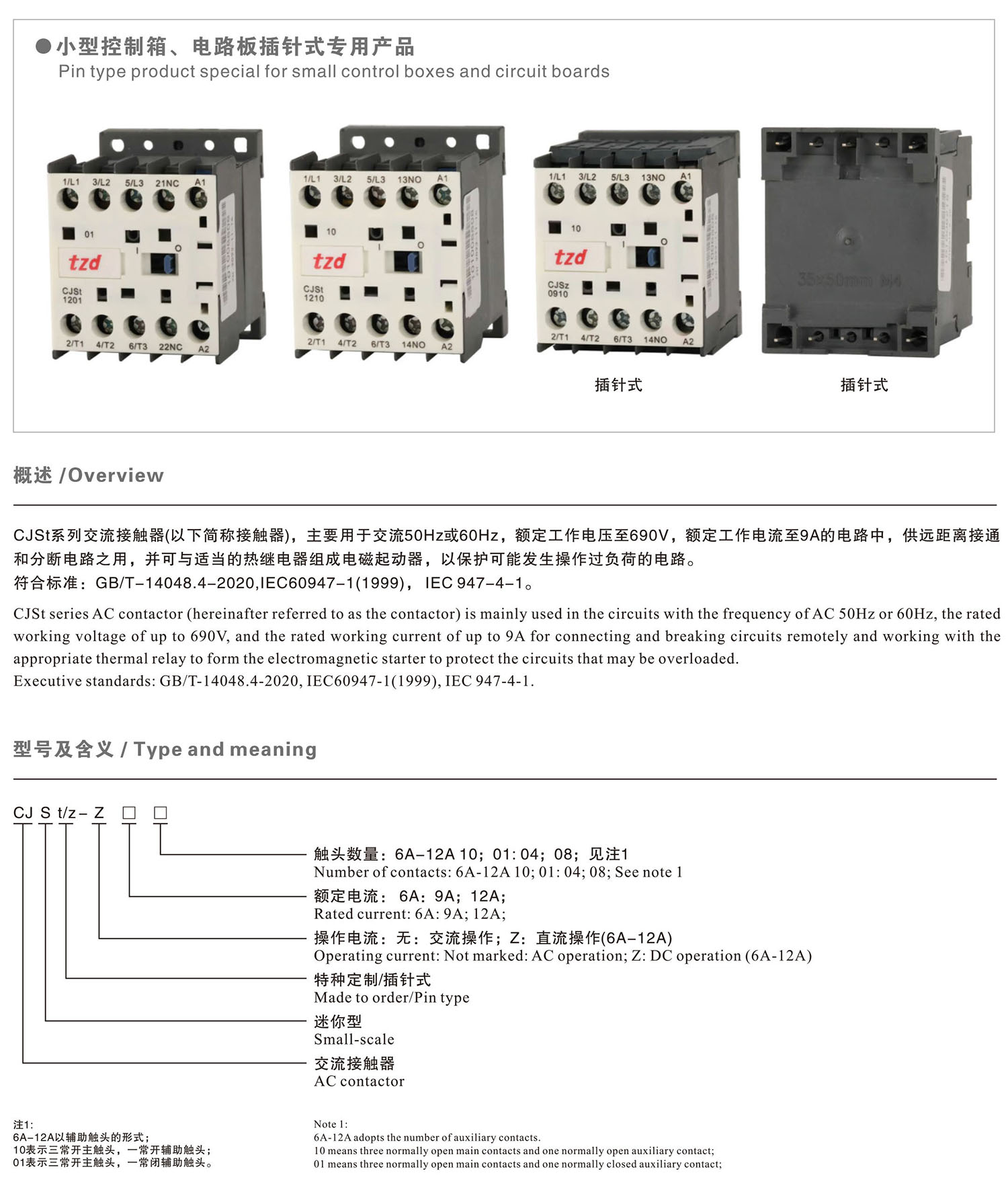 CJSt 正火特制系列迷你型交流接觸器產品說明書