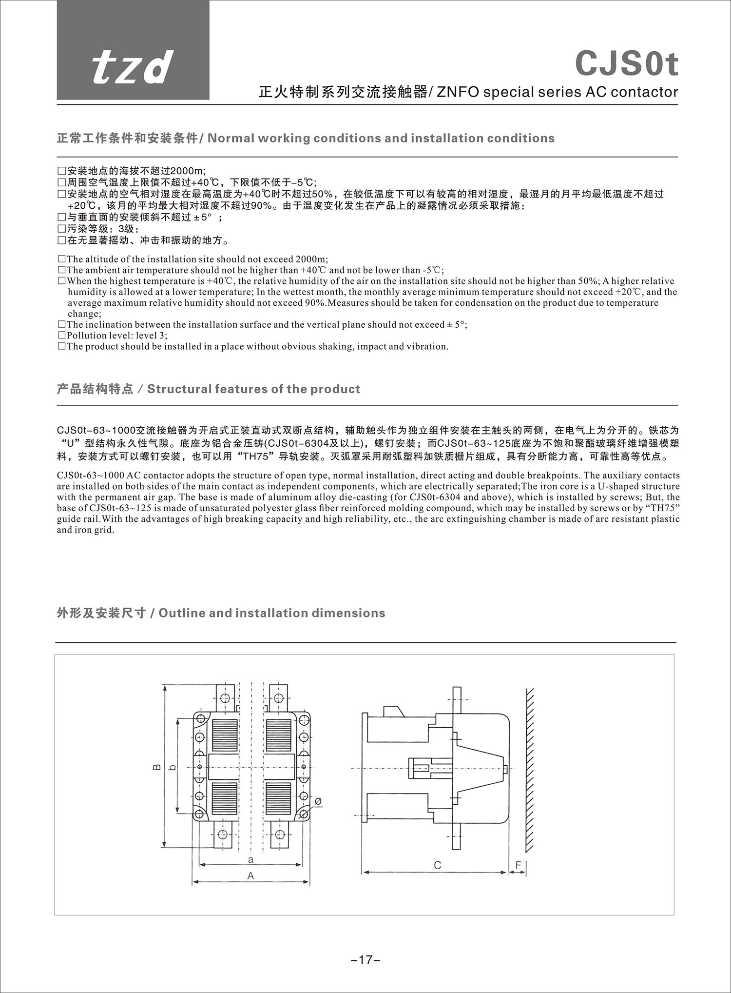 CJS0t 正火特制系列交流接觸器產(chǎn)品說明書